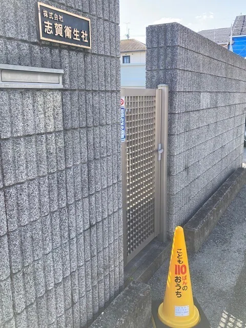 弊社も県道沿いと玄関に黄色のロードコーンを設置しました。