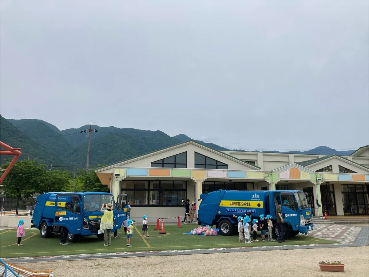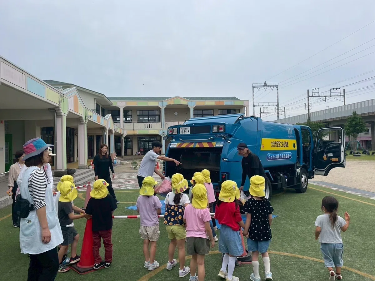 「あそびを とおして まなぼう!」をテーマに当日は普段実際に使用しているパッカー車(ごみ収集車)を園に持ち込み、園児の皆さんには乗車体験やごみの積み込み体験をしてもらいました。