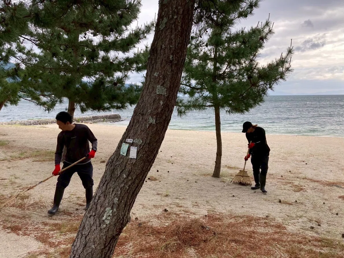 また浜辺に流れ着いたごみや枯れ葉も多くシーズン前の清掃は欠かせません。