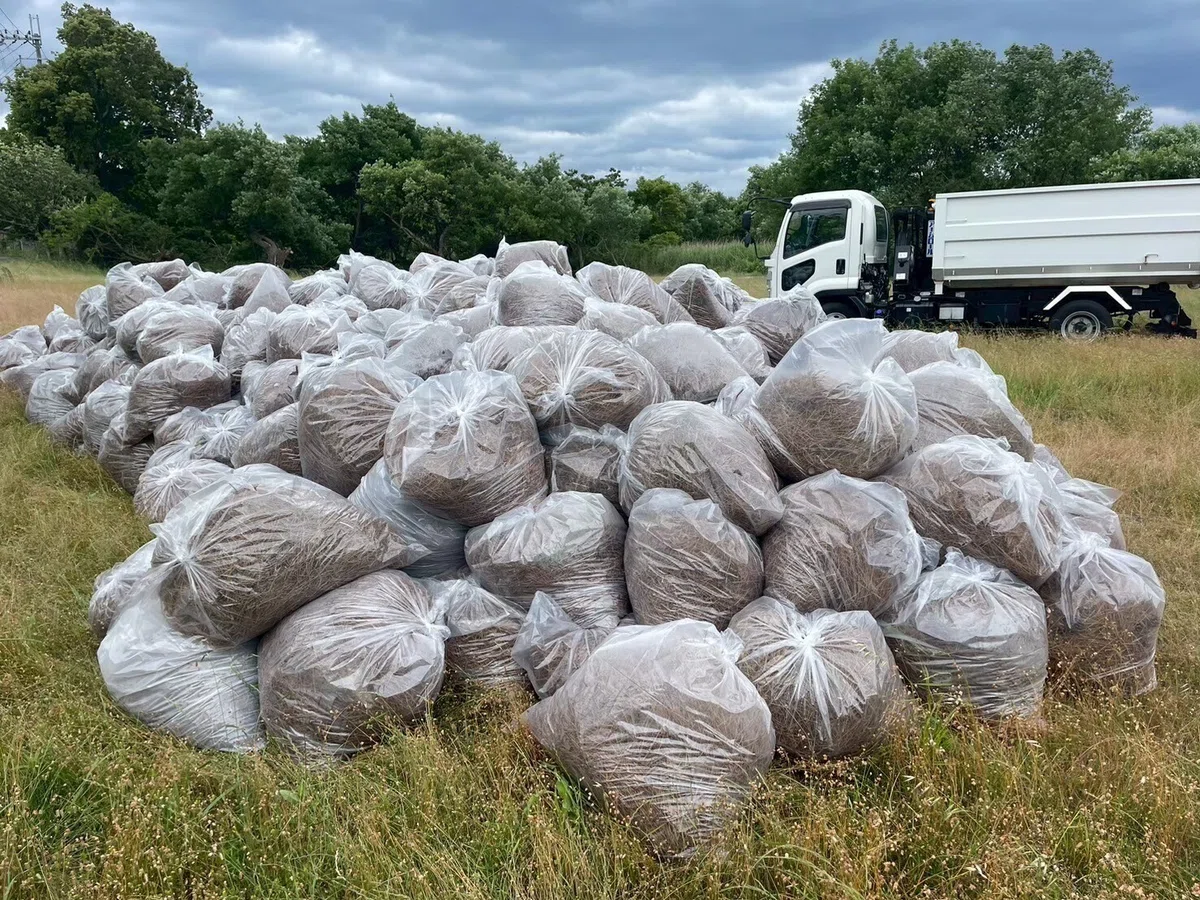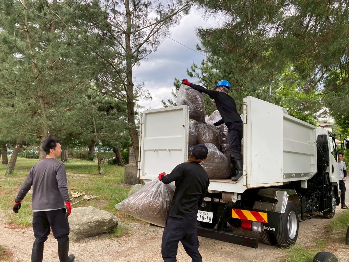 コンテナ車を使用して皆さんが集めた大量のごみ袋を効率よく回収し運搬することで作業をスムーズに進めることができました。